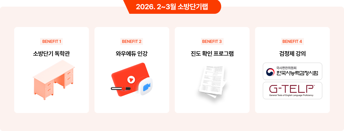 2°ú¸ñ + ¼Ò¹æ´Ü±â ¿Â¶óÀÎ ÇÁ¸®ÆÐ½º PLUS+ 4,170,000¿ø 2°ú¸ñ + ¼Ò¹æ´Ü±â µ¶Çаü 5,590,000¿ø ¼Ò¹æ ü·ÂÈÆ·Ã 1,840,000¿ø ƯÀü : 2026. 2~3¿ù ¼Ò¹æ´Ü±â·¦ ¹«·á Á¦°ø |